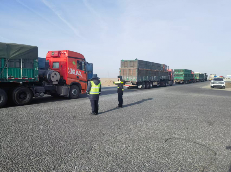 新的一年,戈壁路三岔路口车流滚滚,繁忙依旧,风沙中,“戈壁扎鲁警队”坚守在路上,温暖在心上。