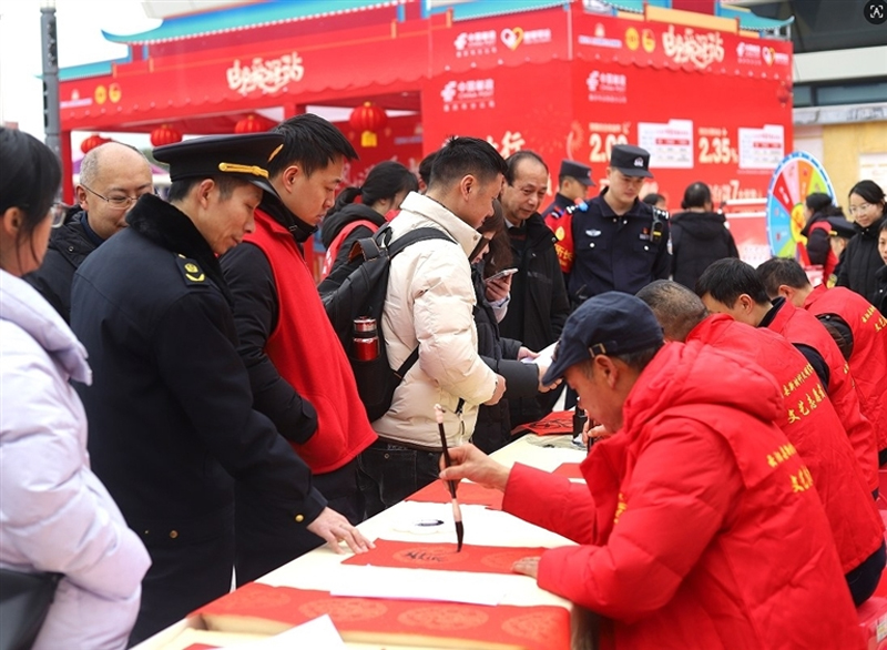 “见法乡情”文化体验区成了活动的“人气王”,书法家现场挥毫,忙得不亦乐乎。“刚下车就领到了‘新年的第一副春联’,回家真好!”一名返乡旅客拿着刚写好的春联,笑得合不拢嘴。