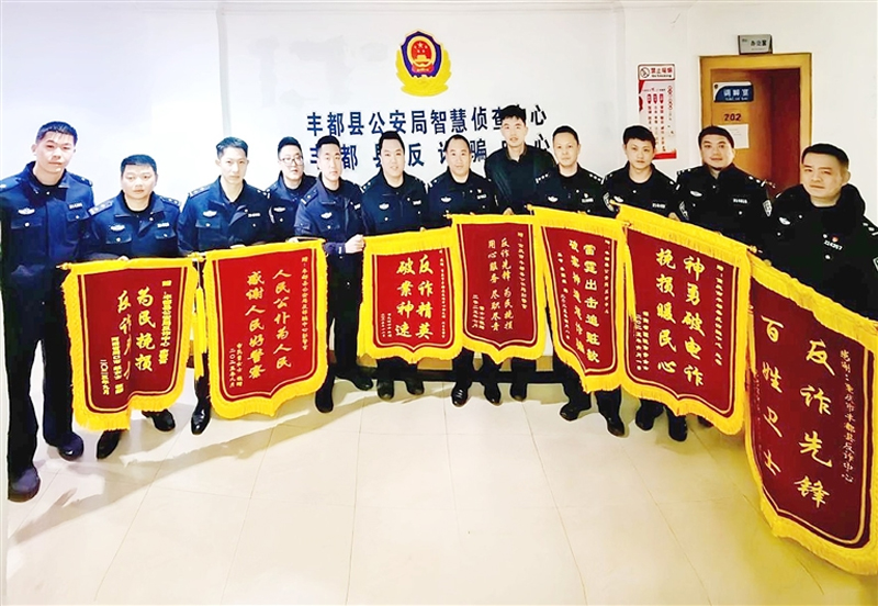 33面红彤彤的锦旗挂满了丰都县反诈骗中心办公室,“反诈精英破案神速”“失而复得暖民心人民警察为人民”等滚烫的字迹,既是群众的由衷赞誉,更是这支反诈铁军交出的硬核答卷。