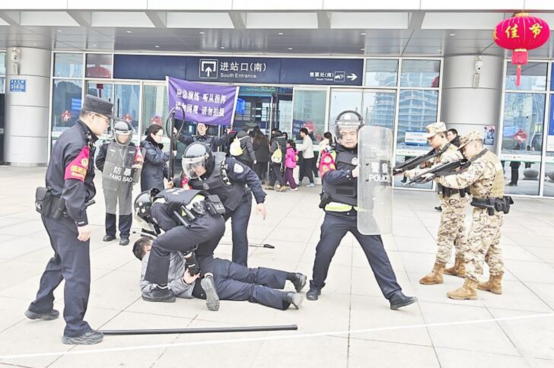 重庆铁路公安处民警与万州区公安民警、武警官兵及车站职工在万州北站联合开展应急处突演练