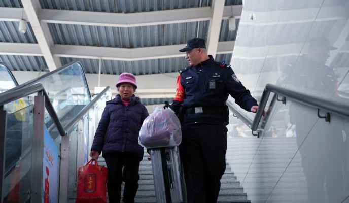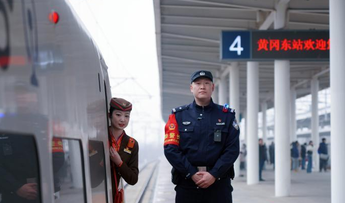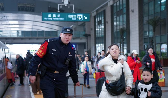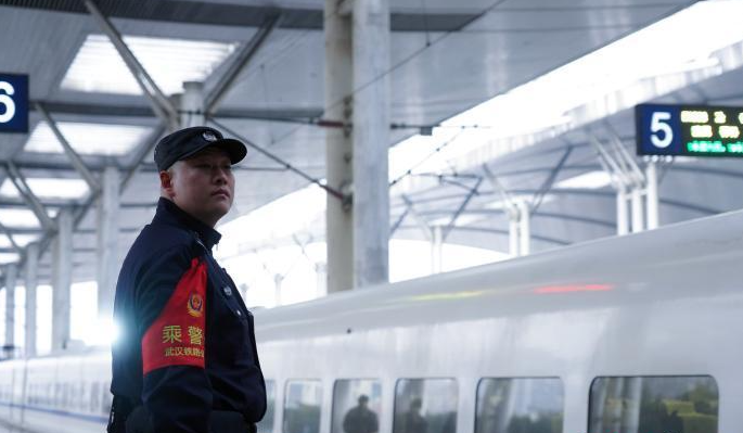 2月5日早上9点27分,在武汉市武昌火车站的一声声火车鸣笛声中,武汉铁路公安处乘警支队二级警长罗晨林,身穿警服、提着一个小行李箱,走进了G5744列车,开启了他护航春运的又一趟旅途。