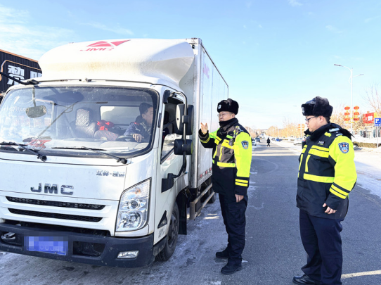“春节期间车多人多,一定要注意行车安全。驾乘车辆请系好安全带,不要疲劳驾驶,家人等你安全回家。”交通管理大队民警对着司机说道。