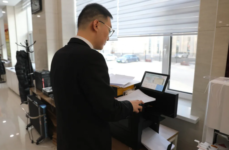 在佳木斯市向阳区人民法院的导诉台旁,矗立着“新晋顶流”——要素式诉状自助生成机。正逢轮值的蕙雯庭长语调轻快,一边听着大哥磕绊地讲话,一边指导其打勾、滑动、补充信息,没两分钟,机器就“噗噗”吐出两页纸,是标准的要素式起诉状。