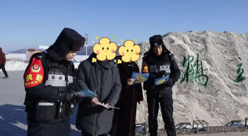 推行“民警就是导游”理念,分局民警化身“服务管家”,在鹤立湖冰上乐园、东山文体公园、平安塔等主要景区主动为游客提供路线指引、冬季旅游安全提示、反诈宣传、禁毒宣传等服务,发放《冬季交通安全提示函》《反诈宣传手册》《禁毒宣传手册》,通过景区广播、面对面案例讲解等方式,民辅警在与游客互动过程中普及防盗窃、防诈骗、冬季出行安全等知识,将各类安全知识融入文旅体验,提升游客自我防护意识。