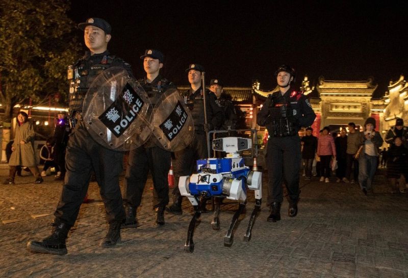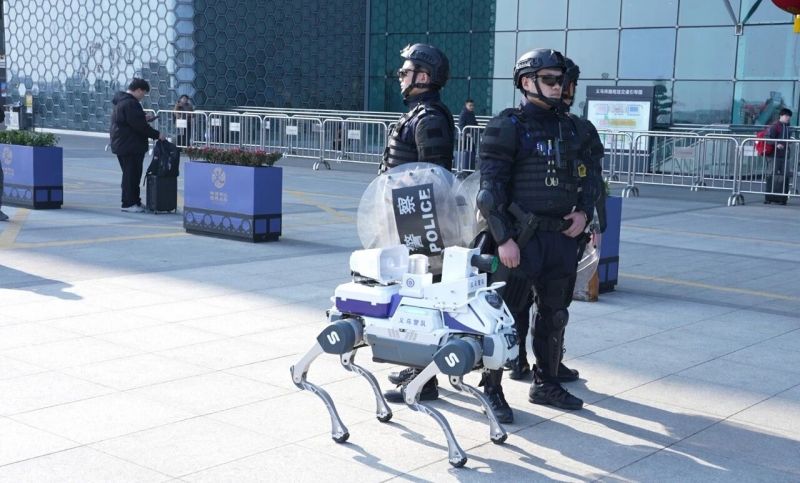 在国际商贸城五区进口商品馆,机器狗配合巡特警开展移动巡逻,借助AI识别快速捕捉异常行为并实时预警。春节期间,全市投入使用的机器狗累计巡检超350公里,识别安全隐患11处,在27处人流密集区辅助开展疏导提示,成为民警执勤的可靠“伙伴”。
