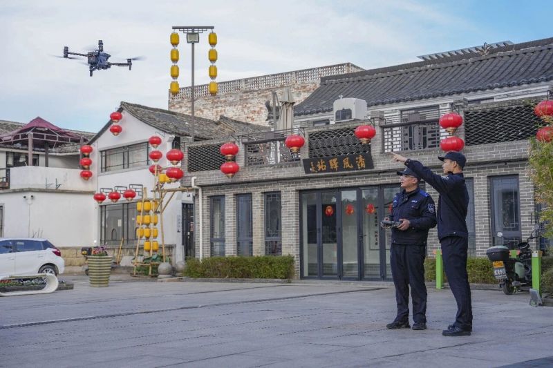 与此同时,空中视角也在默默守护。大年初一,16架警用无人机准时升空,开启春节全时段巡航。在市民广场与绣湖公园上空,搭载高清变焦与热成像双镜头的无人机默默注视——这一带正是民俗活动核心区,新春装饰与非遗展演吸引大量市民游客聚集。