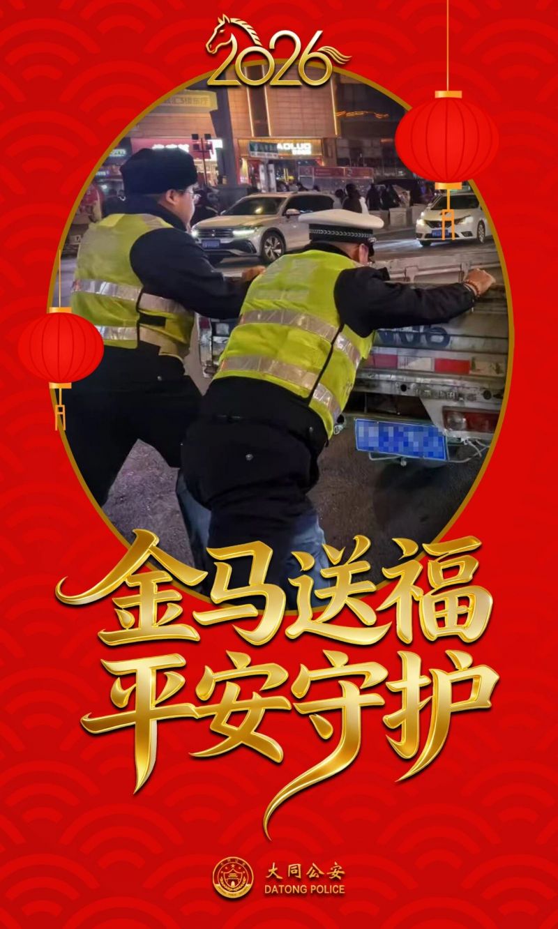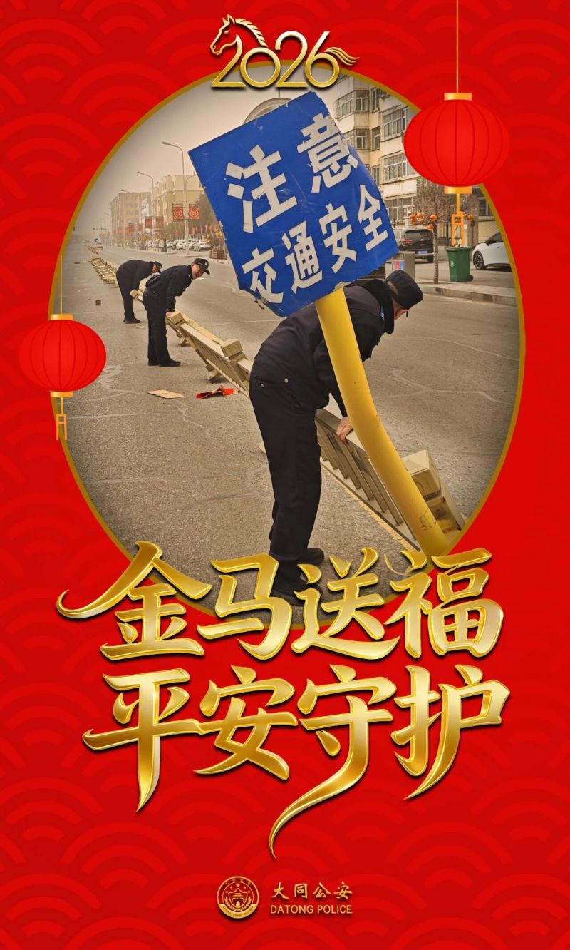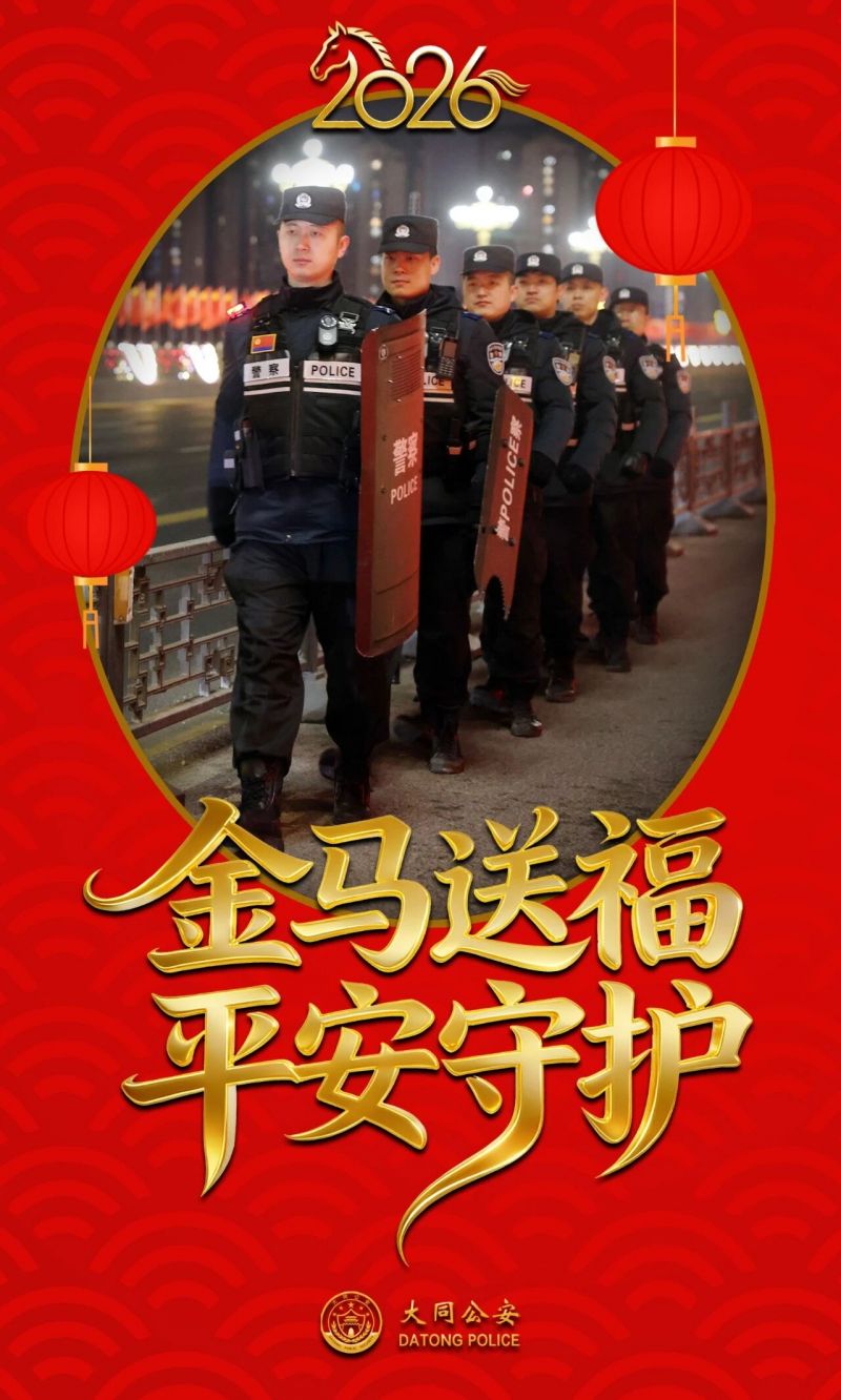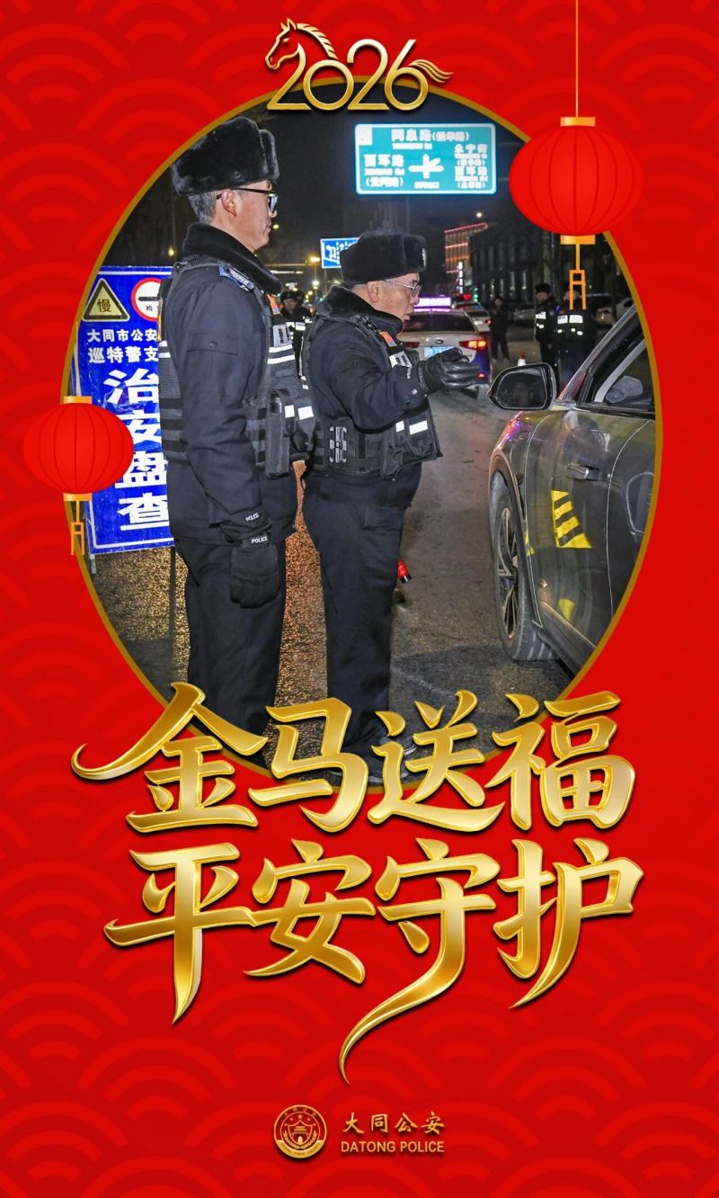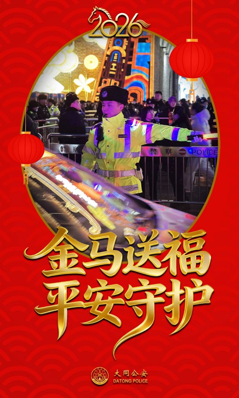 海报|“警”色+“年”味=平安大同 2026-02-27 15:23 山西长安网 字号: 灯火璀璨,良辰美“警”。 这个春节,山西大同公安民警辅警全员在岗、日夜坚守,以“警察蓝”为底色,绘就节日平安画卷;用“中国红”为愿景,守护万家团圆灯火。 一组海报,定格马年春节平安守护瞬间! 来源:大同公安微信公众号 责任编辑:CmsTop 打印