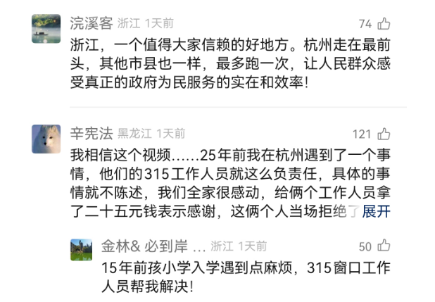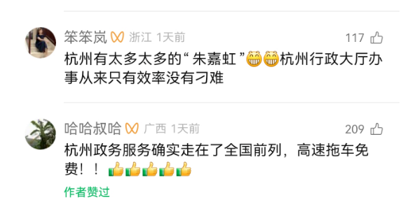 谢先生特意录了一段视频感谢朱珈虹,“她不是在一个岗位上机械重复,而且在认真听取群众需求,思考怎么解决问题。可能这就是杭州效率的缩影。”对此,不少网友留言点赞:“一点不意外,这就是杭州!”