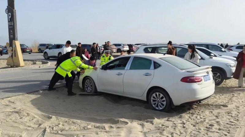 “前方停车场车位已满,请各位游客根据指引前往临时停放点,注意行车安全!”