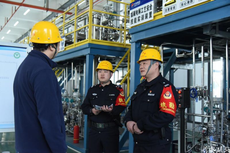 2月27日,在湖北省宜昌市高新技术产业开发区,湖北东昱欣晟新材料有限公司生产车间内机器轰鸣,生产线全速运转。宜昌高新区公安分局民警邓炬锋带队深入企业,对危化品仓库、监控中心等关键部位开展走访检查。这样的现场巡查,已是宜昌高新区公安分局全力护航辖区企业复工复产的日常写照。