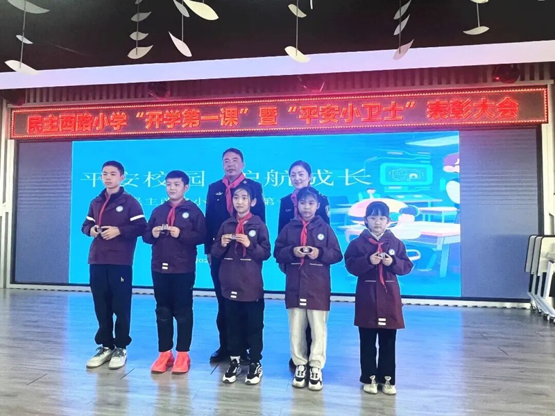 “我是安全小卫士,守护平安我先行!”在民主西路小学的讲台上,15名同学接过荣誉徽章,眼神里闪烁着自豪与坚定。