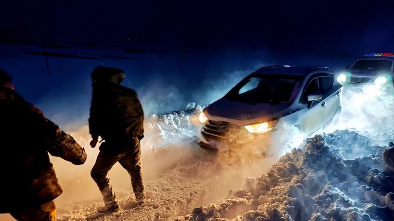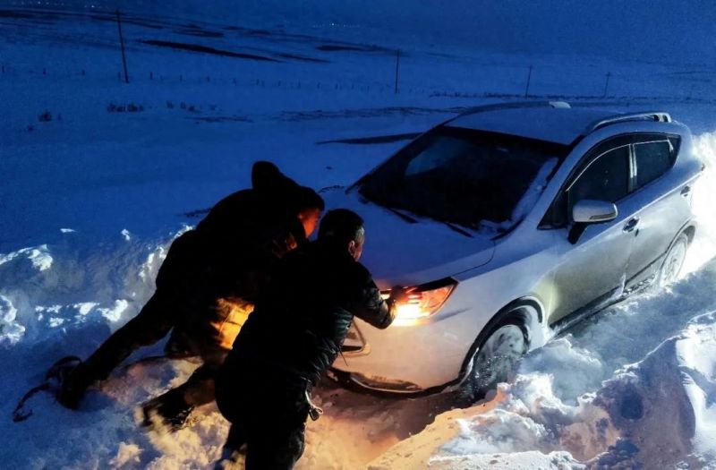 风雪救援,被困车辆顺利脱险