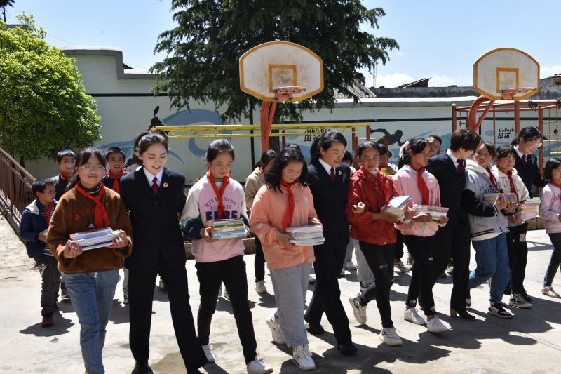 曲靖市沾益区人民检察院10名“杜鹃花”爱心妈妈分别走进德泽乡米支嘎村委会岩头上村、炎方乡磨脚村委会磨脚西村开展结对关爱活动,以法治力量和女性温情护航孩子健康成长。