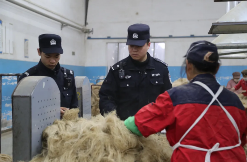 ▲咸宁市公安局咸安区分局双溪派出所民警辅警深入辖区纺织企业开展安全隐患排查