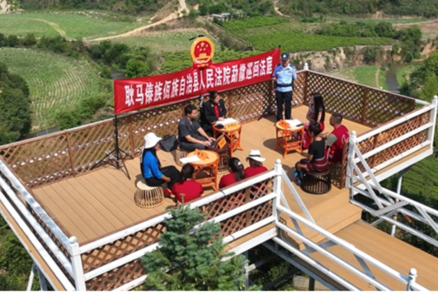 当春风拂过勐撒镇的万亩稻田,法庭干警便化身“法律播种人”,践行“鲍卫忠群众工作法”,深入田间地头、村寨院落,设立“芒见自然村旅游诉讼服务点”,依托“自然村长”、网格员、法律明白人等前哨力量,2025年参与排查辖区内土地权属、邻里关系、劳务用工等潜在矛盾纠纷30余次,通过提前介入疏导、提示风险,将矛盾化解在萌芽状态。