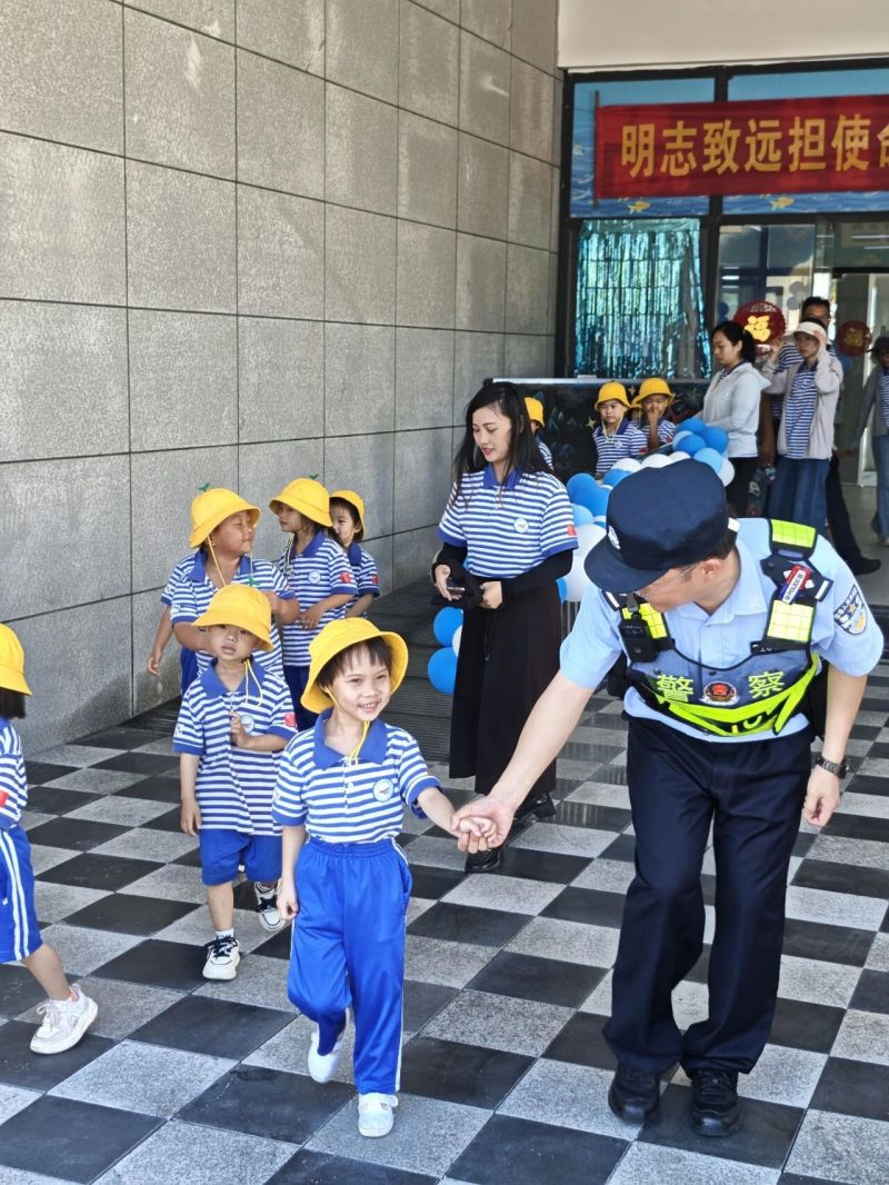 3月2日,三沙市公安局民警在三沙市永兴学校门口引导学校师生有序离开校园。(省公安厅供图)