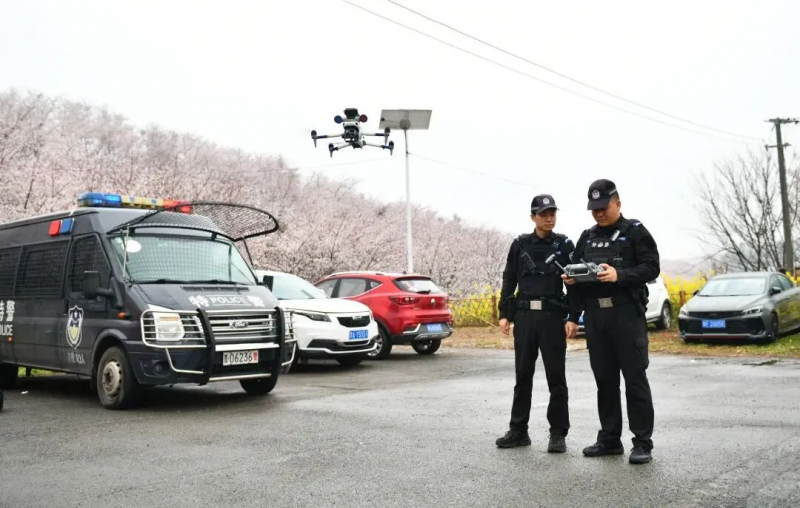 “天上有无人机巡航,地上有巡逻车,还有警察值守,特别安心。”正在赏樱的游客王女士坦言,此前担心人多拥堵,没想到无人机发现小路口拥堵后,立即通过高空喊话疏导,短短几分钟就恢复通畅,高效的科技保障让赏樱之旅更舒心。