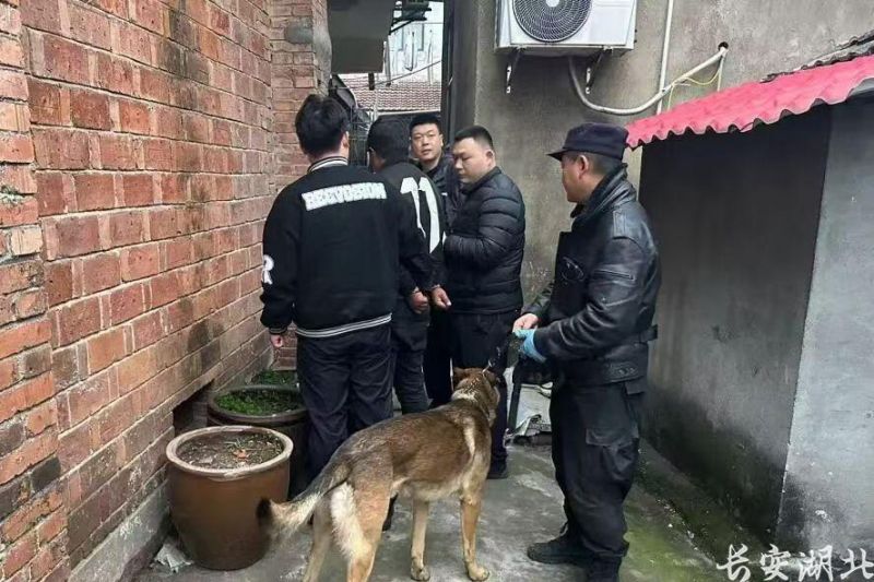 16时30分,监利市公安局刑事侦查大队向警犬训练基地发出指令:立即派出警犬支援。基地迅速抽调3名经验丰富的训导员,携警犬“毛太”“安安”赶赴现场。