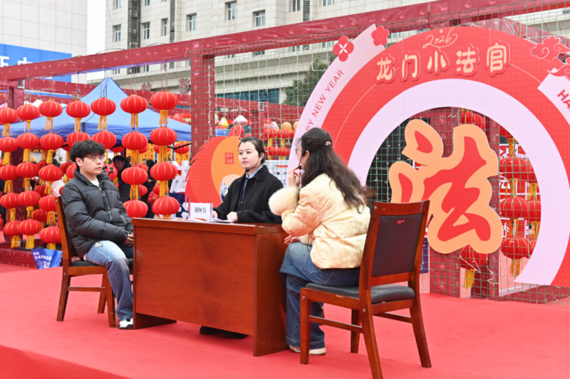 核心活动区内,七大特色板块各展风采,人气爆棚。在【诺】一言九鼎区(马上守法),一面庄重的“守法承诺墙”前人头攒动,市民们纷纷写下并粘贴自己的守法誓言,以“君子一言,驷马难追”的诚信寓意,许下尊法守法的庄严承诺。【演】龙门小法官区(马上执法),“小法官”们身着法袍、手执法槌,在模拟法庭中体验司法威严;普法情景剧、三句半、干板腔等本土特色节目轮番上演,将法律知识融入文艺表演,赢得现场掌声连连。