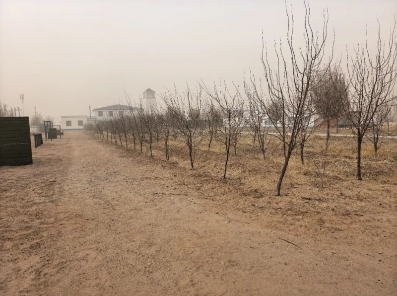 3月12日,辖区大面积出现大风沙尘天气,八九级大风中,黄沙被吹得四周弥漫呛人,大风裹挟着米粒大的沙砾砸在脸上,威力十足,能见度低,可是当车行驶至查干通格公安检查站前时,风沙在一排排树木的臂膀前就会威力顿减,过往的车辆行人也会自然而然放慢速度喘口气歇歇脚,给自己的这一次长途出行加油打气补充再出发能量。