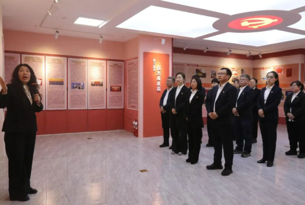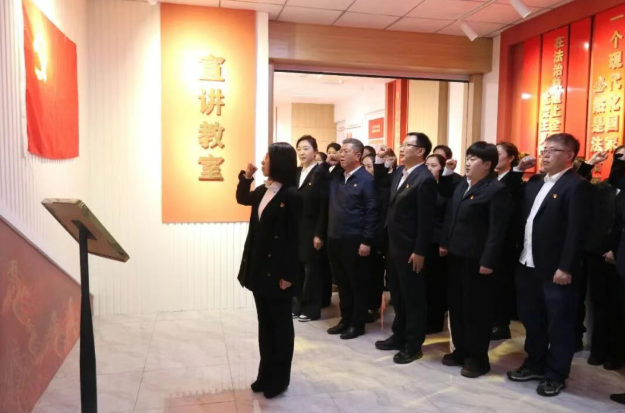 在参观践学环节,党员们走进习近平法治思想宣讲教室,通过图文并茂的展陈和生动形象的微课互动,系统学习习近平法治思想的形成发展、核心要义、重大成就以及龙江实践。围绕“十二个坚持”,党员们深刻领悟这一伟大思想与时俱进、守正创新的理论品格,深切体会其随着时代发展和实践深入而不断丰富完善的强大生命力。参观结束后,全体党员庄严地重温入党誓词。