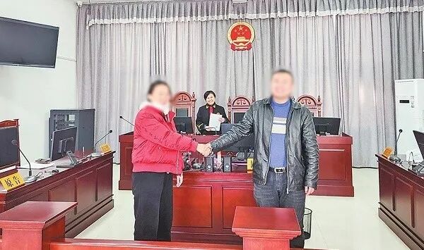调解成功后,当事人握手言和。孙宏博摄