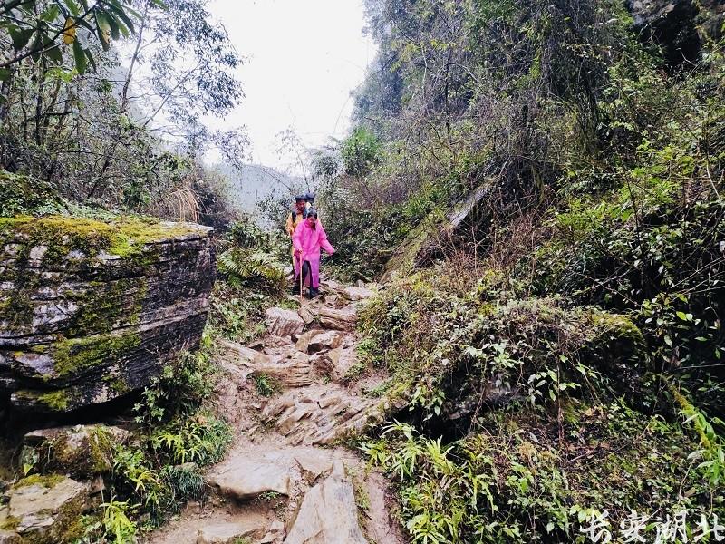 救援人员顾不上山路湿滑、丛林难行,争分夺秒,深一脚浅一脚地往大概位置赶。一边艰难地爬坡上坎,一边大声呼喊驴友,走了一个多小时,终于在“巨石阵”附近找到了迷路的两名驴友。