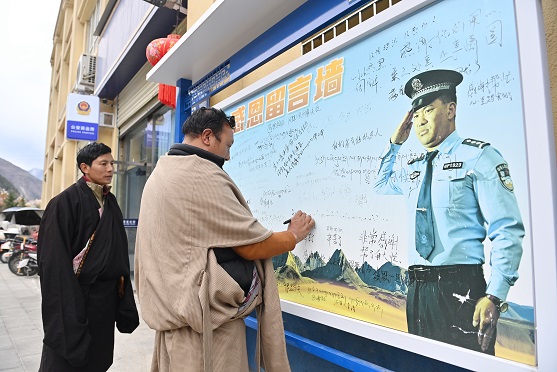 临别之际,两人紧紧相握的双手久久没有松开,以藏族群众最质朴深情的碰头礼相互致意。这一刻,掌心相贴、额头相依,不仅定格下警民同心、鱼水情深的温暖瞬间,更诉说着呷绒降泽十六年来默默坚守、用心守护的一段段动人故事。