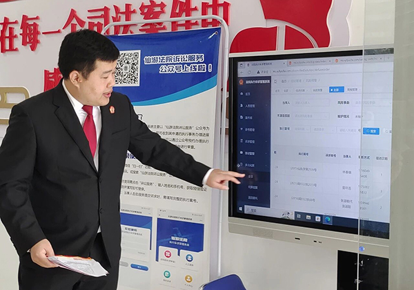 智能取号机有序叫号,执行信息公示屏实时更新案件进度,自助填写区群众在志愿者引导下操作终端,柜台工作人员耐心核对材料、解答疑问——这不是银行服务大厅,而是提档升级后的石狮法院执行服务中心。
