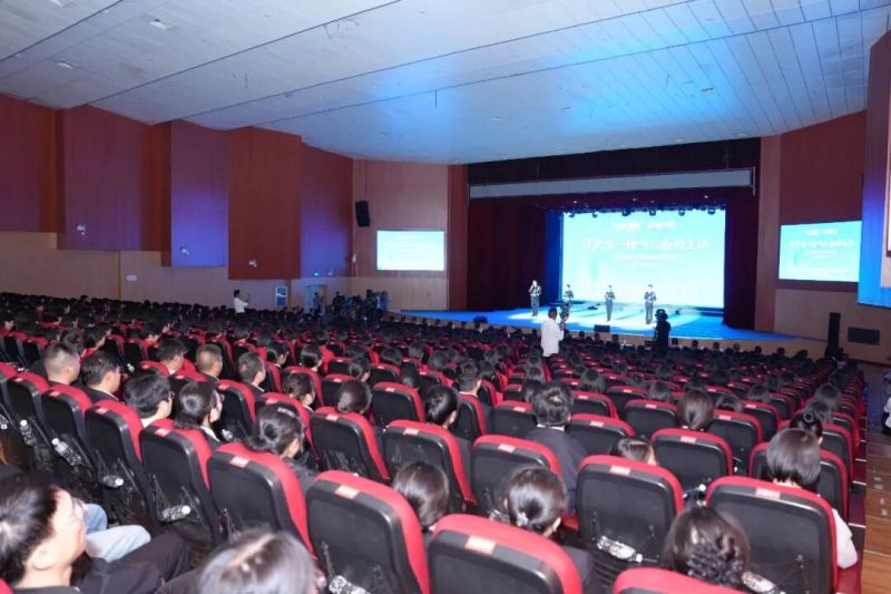 宣讲尾声,全场起身齐声合唱《英雄赞歌》《少年壮志不言愁》,铿锵歌声响彻礼堂,将活动氛围推向高潮。