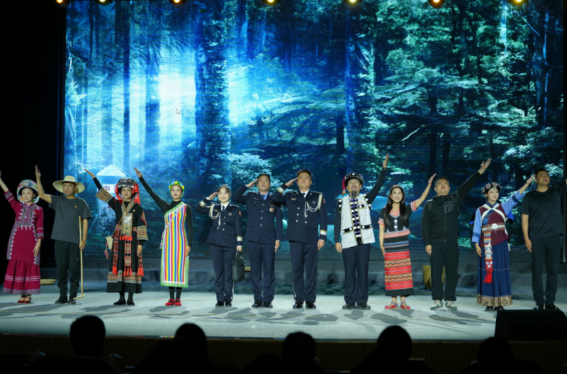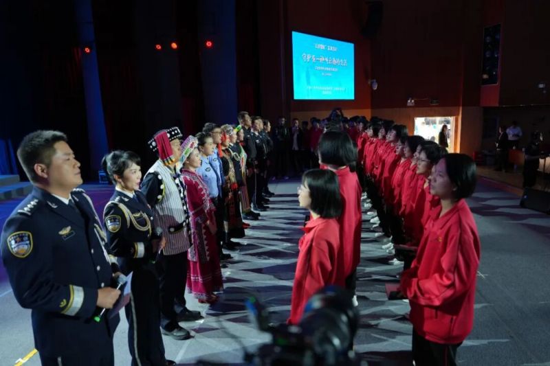 《警察叔叔也上网》《我们都是收信人》以师生喜闻乐见的演绎方式讲述百万公安大V“茶城森警”“罗平警方”、“国庆警务室”等基层一线的动人故事,展现了云南公安走好新时代网上群众路线和维护民族团结的生动实践。朴实话语饱含真挚情感,平凡故事蕴藏千钧重量。现场氛围庄重而热烈,观众席不时响起密集掌声,许多师生悄悄拭去眼角的泪水。