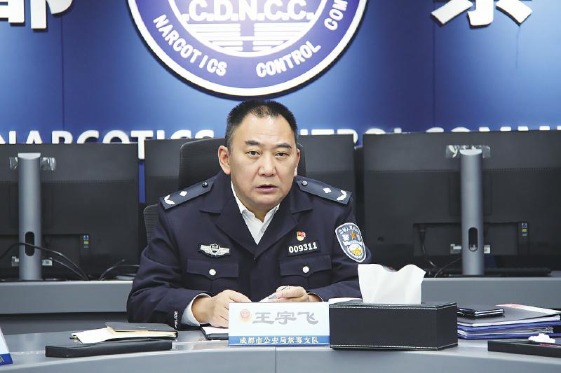 2019年1月,警方发现外省某市一个藏在深山之中的制毒窝点,海拔超2000米,进山道路被当地人设卡封锁,车辆无法通行,只能徒步从背面的雪山攀爬潜入。王宇飞背着20公斤的装备,带着20余名缉毒民警,在刺骨的寒风、没膝的积雪中跋涉。“当地人说,本地人上山都要走4个小时,那天,王宇飞带着队伍走了整整7个小时,海拔不断升高,积雪深至膝盖,他不敢让大家中途休息太久,怕一停下就冻得再也迈不开脚步。”参与此次行动的张飞回忆道,收网指令下达后,王宇飞第一个冲上前一脚踹开木门,与队友合力将正准备拔枪的毒贩当场制服。最终,他们抓获10余名犯罪嫌疑人,收缴69公斤毒品、217公斤麻黄素,连根拔起了这个横跨秦岭的制毒毒瘤。除此之外,他还带队侦破了2018年公安部督办的“306”特大制毒系列案、2024年公安部督办的“3·15”特大走私制毒案等一批在全国有影响力的大案要案,用血肉之躯为成都筑起了一道禁毒防线。