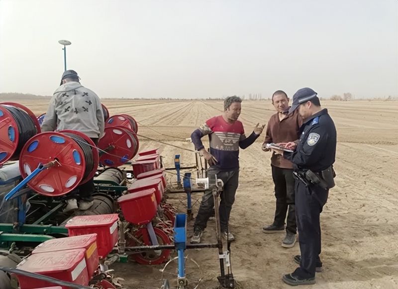 连日来,新疆生产建设兵团第一师金银川垦区甘泉派出所辖区里,一抹抹“藏蓝”身影穿梭其间,从校园“花朵”到沃野春耕、从田间地头到乡间道路,把安全服务送到群众家门口,把服务延伸至田间地头,为春耕生产筑牢坚实后盾。