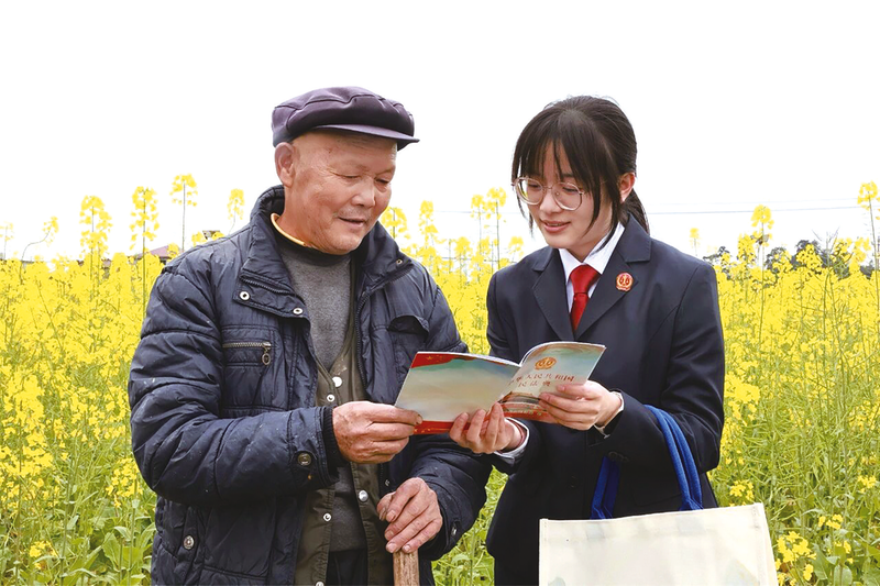 “老人家,您要是遇到农资买卖纠纷、土地承包等问题,都可以拿着这本《民法典》来找我们,里面都写得明明白白。”锦屏县敦寨镇的油菜花海间,法院干警与村民并肩而立,结合《民法典》等涉农法律法规,用通俗易懂的语言,围绕土地承包、邻里纠纷、农资消费等与农民生产生活密切相关的问题,面对面答疑解惑,手把手指导村民阅读法律读本。“以前遇到事不知道找谁,现在你们把法律送到田埂上,心里踏实多了。”一位村民接过手册,笑着回应。