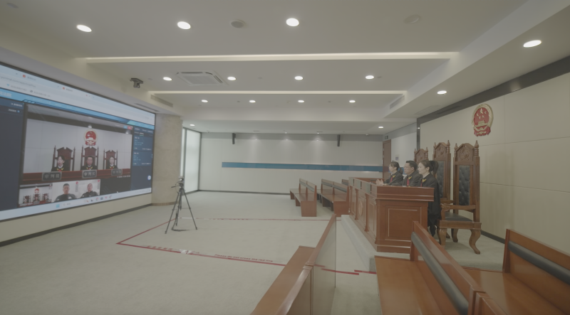 一场“屏对屏”的云端庭审正有序推进。法官端坐审判席,面前的大屏被分割成多个区域,清晰呈现出原告、被告、代理律师各自的实时画面。