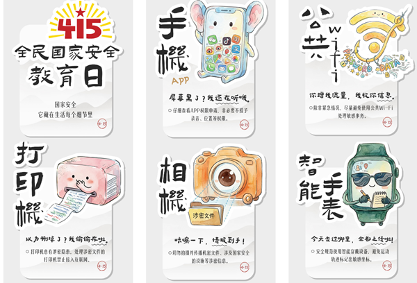 省级层面,省生态环境厅运用新媒体将生态环保安全知识具象化,推出辐射监测员工作纪实VLOG,直观展现辐射监测全过程,诠释护航辐射环境安全对守护国家安全的重要意义;湖南普法公众号、红网・时刻新闻、湖南经视等平台联动推出SVG互动答题、主题海报、微短剧等多元宣传产品,持续展播相关优秀原创内容,并聚焦手机APP、公共WiFi等日常易忽视泄密隐患制作5类场景化卡片式海报,普及保密技巧。各类鲜活宣传形式吸引网民广泛关注转发,相关内容总点击量突破3000万人次,让国家安全宣传既有力度更有温度,切实入脑入心。