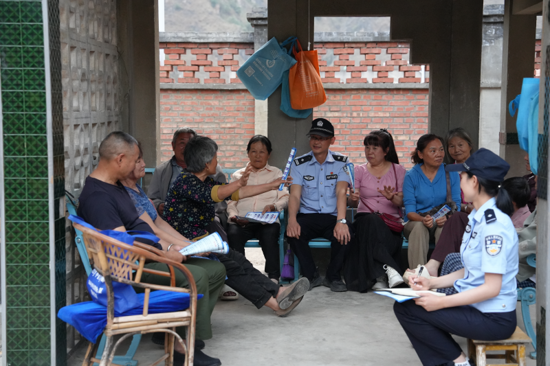 每个季度,民警都会在楼栋长家门口开一场院坝恳谈会。没有主席台,没有讲话稿,用几条凳子一围,民警便开始用方言讲反诈、防火知识。