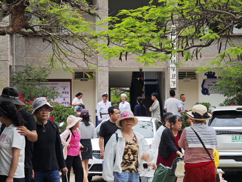派出所院里的凤凰树已经冒出花苞,院子里停满私家车,凉亭中坐着歇脚的游客,有人在接热水,有人对着小黑板拍照,有人和当班的民警聊天……让人恍然觉得是走进了景区游客中心。
