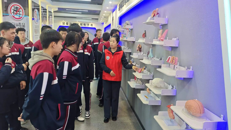 沉浸化体验,强化心灵触动与情感共鸣。充分发挥禁毒教育基地实体化、场景化优势,打造沉浸式研学体验场景。通过吸毒前后器官对比模型、血液循环演示系统、吸毒后容貌蜕变主题展示、禁毒英模事迹展墙等互动展项,给予学生强烈视觉冲击与心灵震撼,让毒品危害入脑入心;在禁毒宣誓墙组织集体宣誓,以庄严仪式感引导学生将拒毒防毒承诺内化于心、外化于行,实现从知识认知到行为自觉的转变。