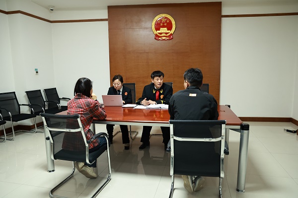 宝鸡中院未审庭庭长杨瀚黎(右二)对涉未成年人子女抚养离婚案件当事人开展家庭教育指导。 王建波 摄